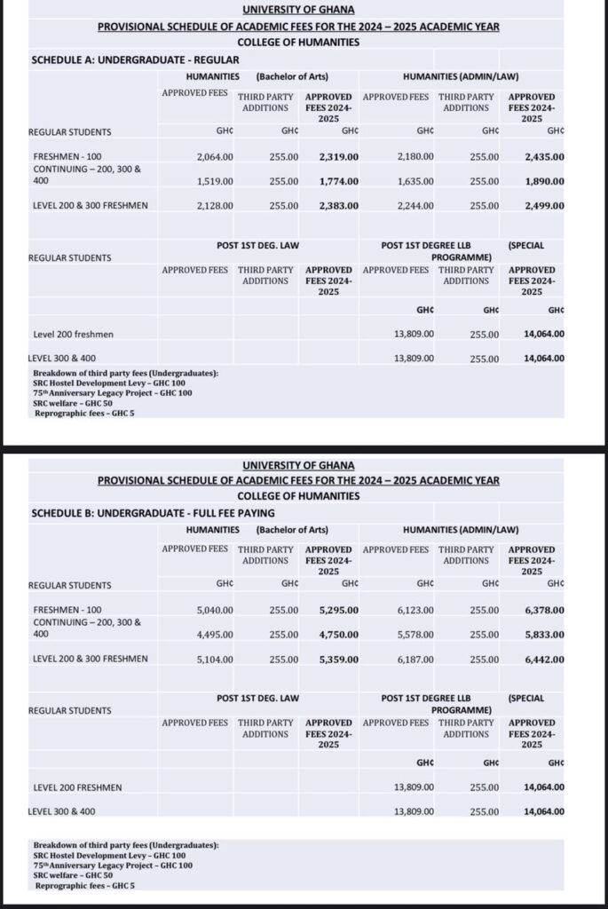 In the same way, first-year undergraduates in the College of Humanities at the University of Ghana School of Law will pay GH¢3,226, which is a 33% rise over the GH¢2,435 they paid last academic year. The cost for returning law students will also increase, from GH¢1,890 to GH¢2,396.